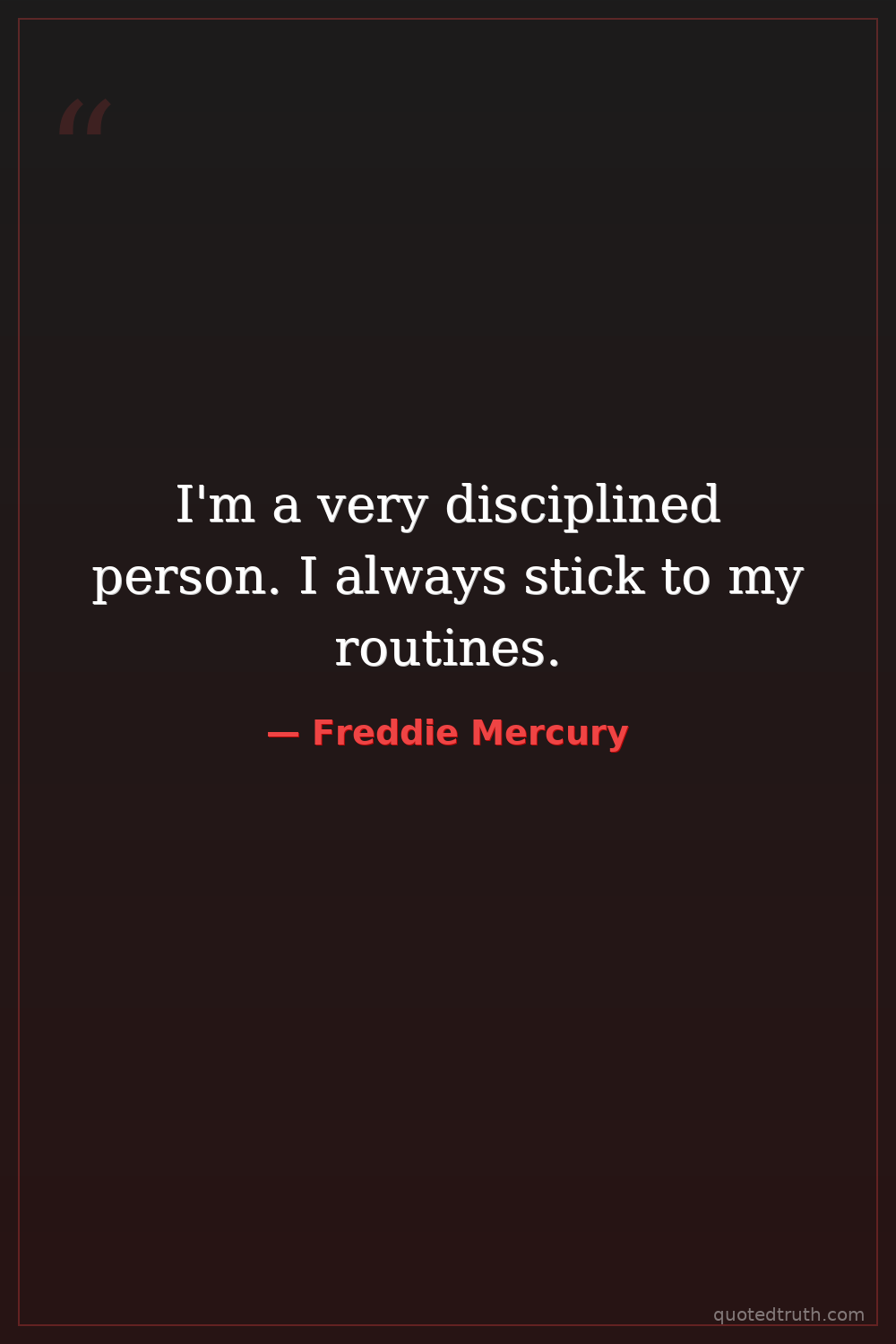 I'm a very disciplined person. I always stick to my routines.
