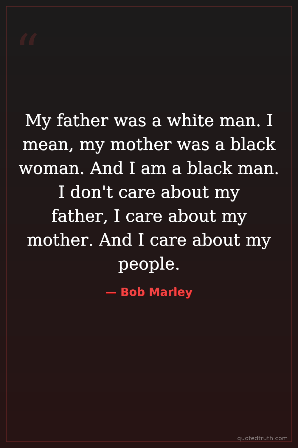 My father was a white man. I mean, my mother was a black woman. And I am a black man. I don't care about my father, I care about my mother. And I care about my people.