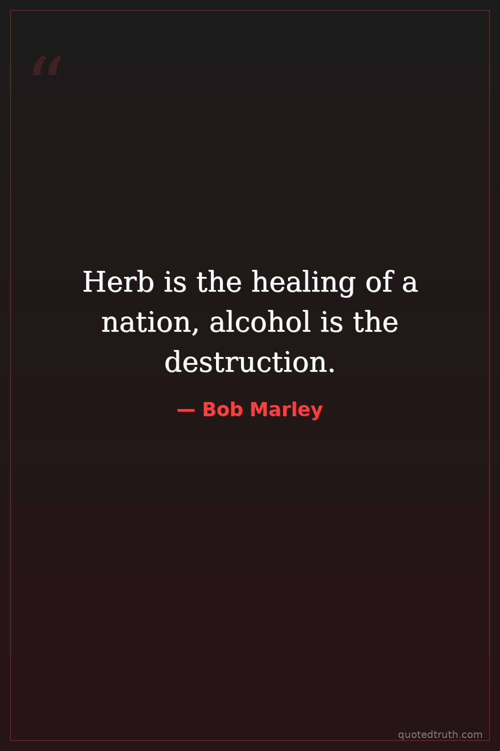 Herb is the healing of a nation, alcohol is the destruction.