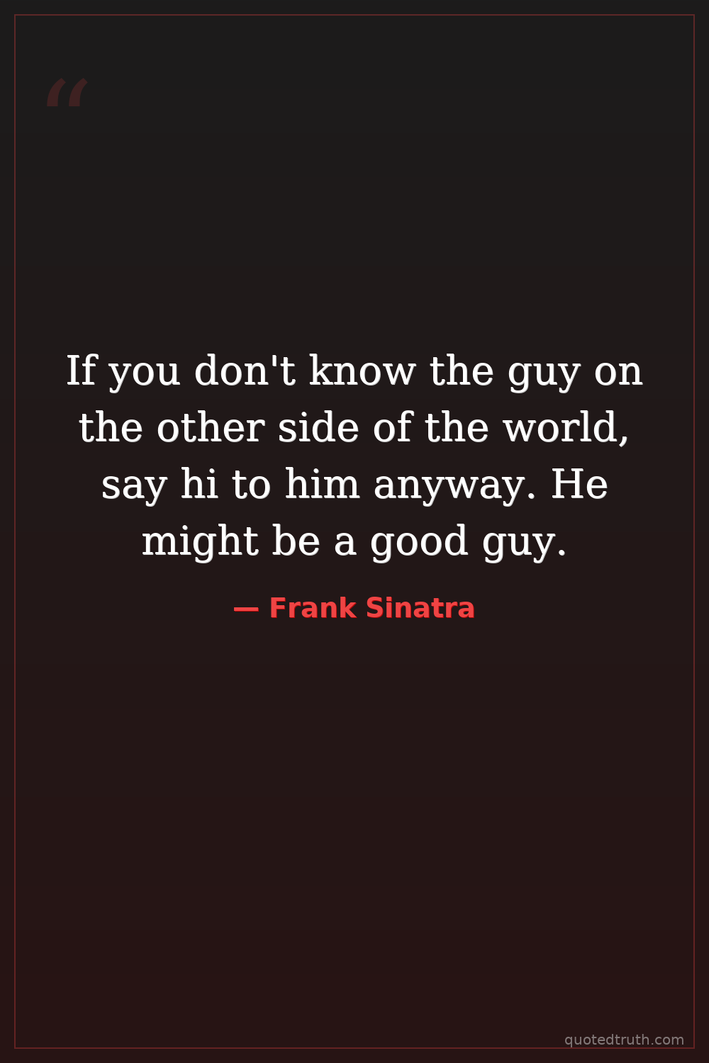 If you don't know the guy on the other side of the world, say hi to him anyway. He might be a good guy.