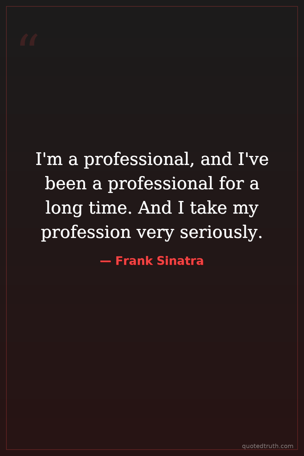 I'm a professional, and I've been a professional for a long time. And I take my profession very seriously.