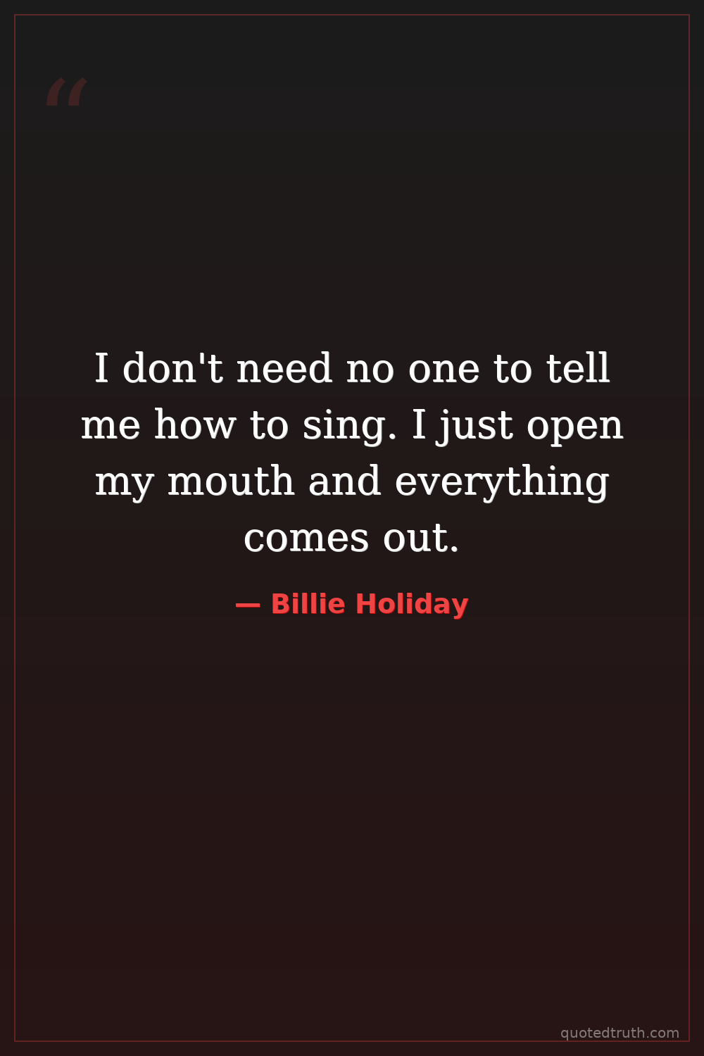 "I've been told that nobody sings the blues like Billie Holiday. That's because I don't sing the blues, I live the blues."