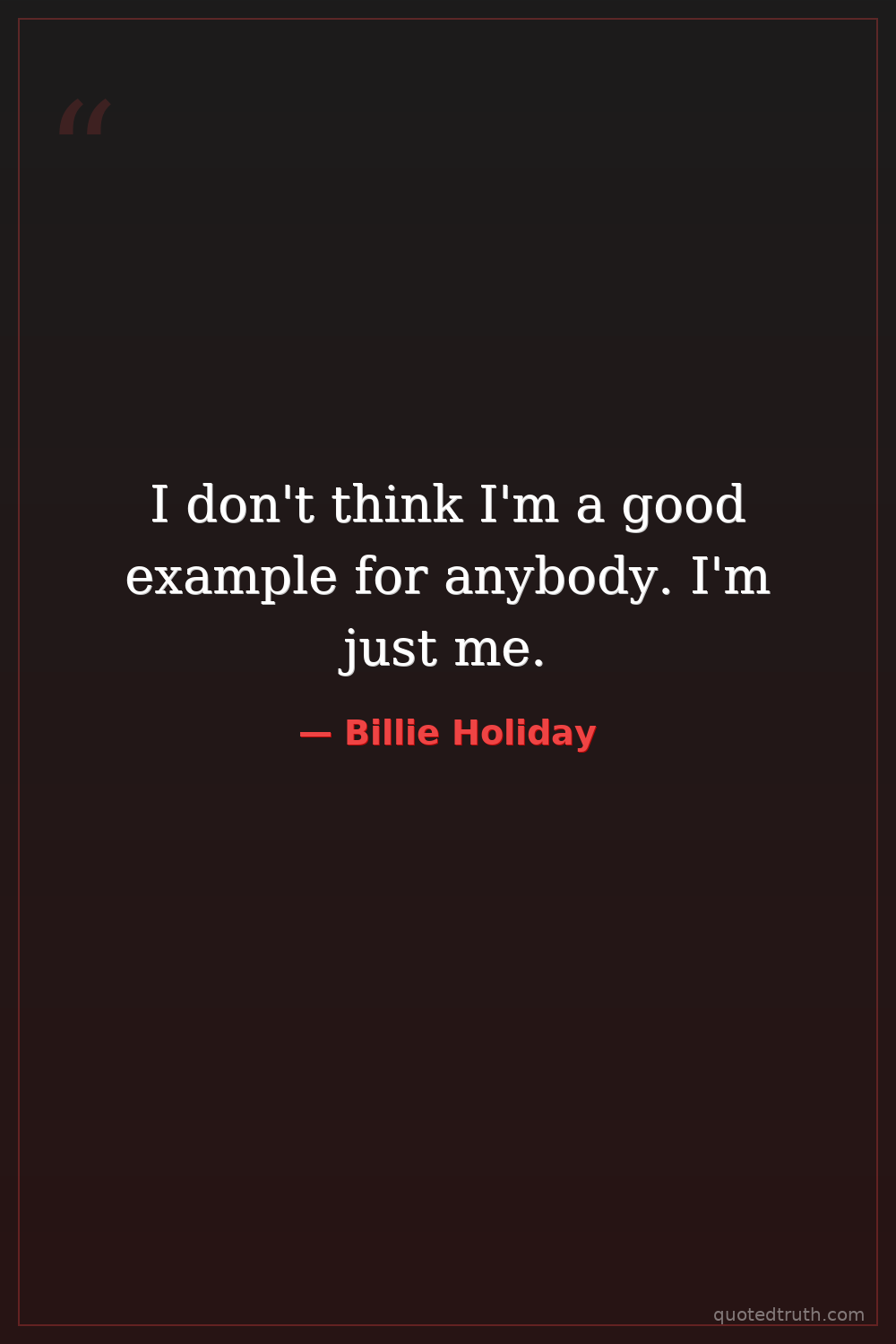 I don't think I'm a good example for anybody. I'm just me.
