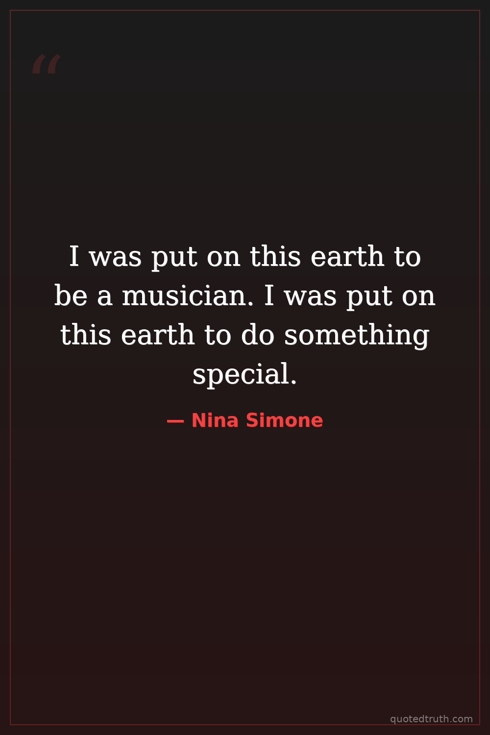 I was put on this earth to be a musician. I was put on this earth to do something special.