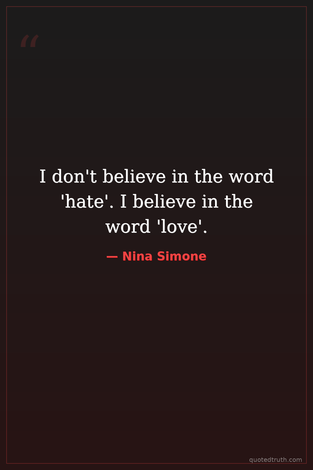 I don't believe in the word 'hate'. I believe in the word 'love'.