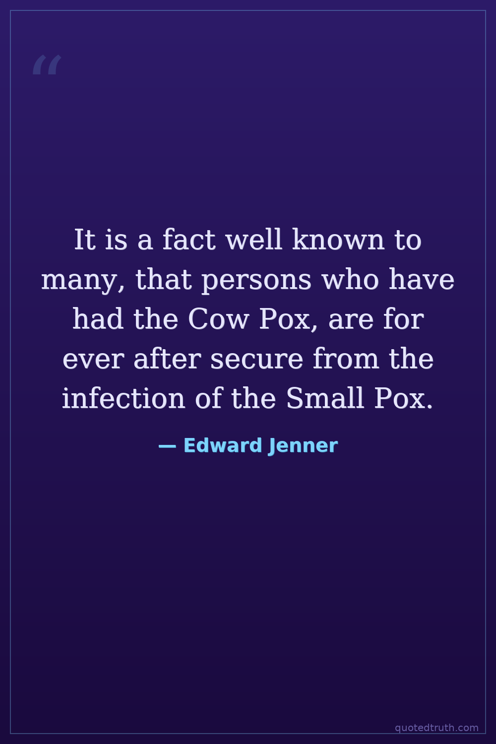 It is a fact well known to many, that persons who have had the Cow Pox, are for ever after secure from the infection of the Small Pox.