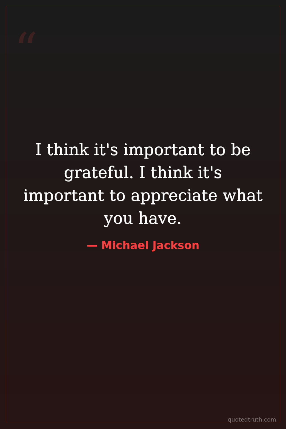 I think it's important to be grateful. I think it's important to appreciate what you have.