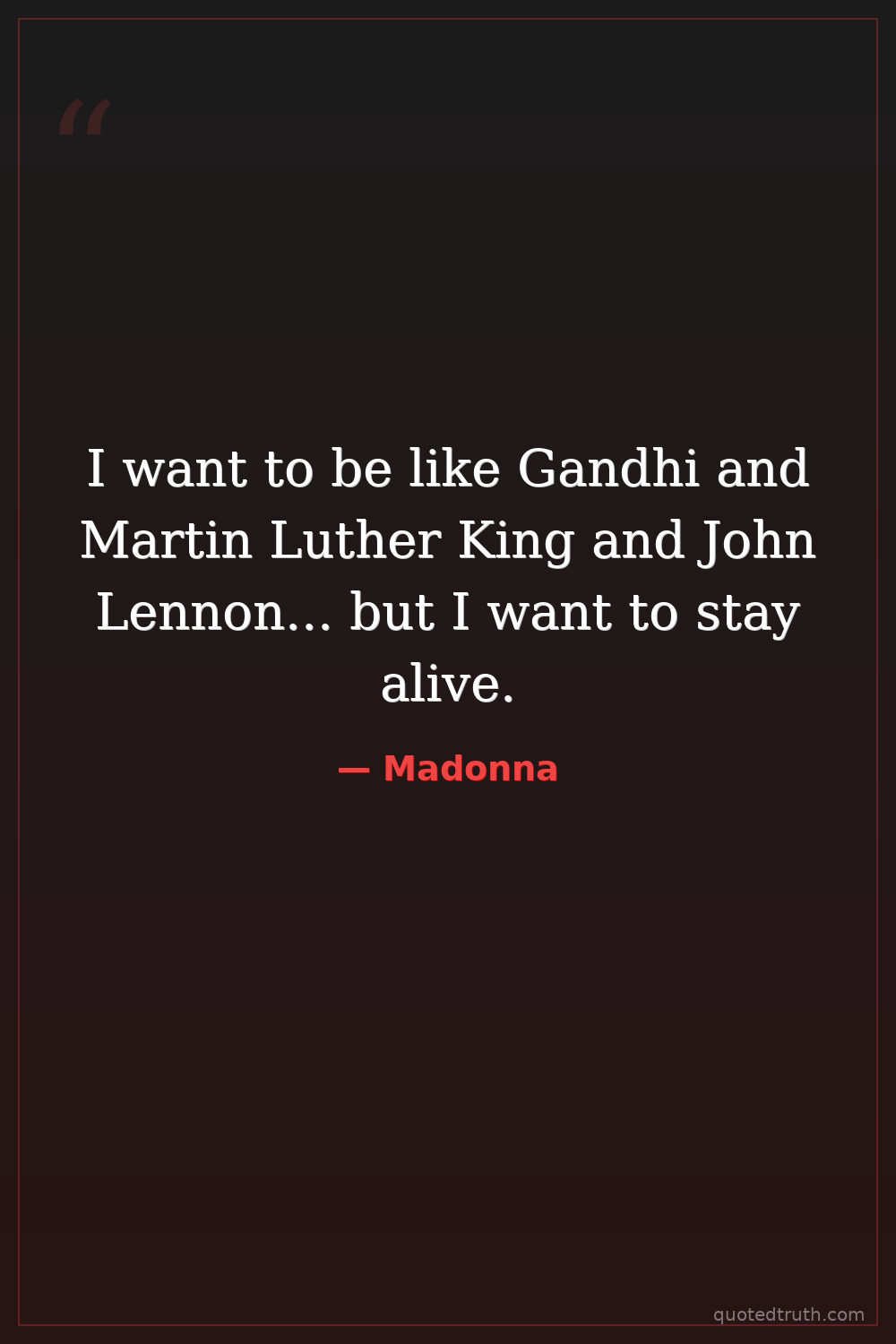 I want to be like Gandhi and Martin Luther King and John Lennon... but I want to stay alive.