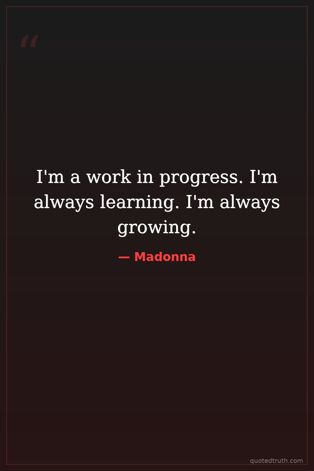 I'm a work in progress. I'm always learning. I'm always growing.