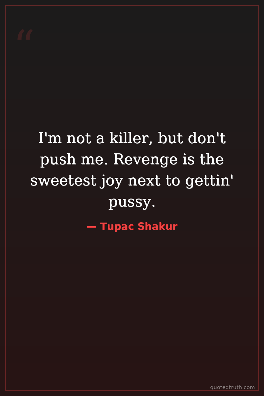 I'm not a killer, but don't push me. Revenge is the sweetest joy next to gettin' pussy.