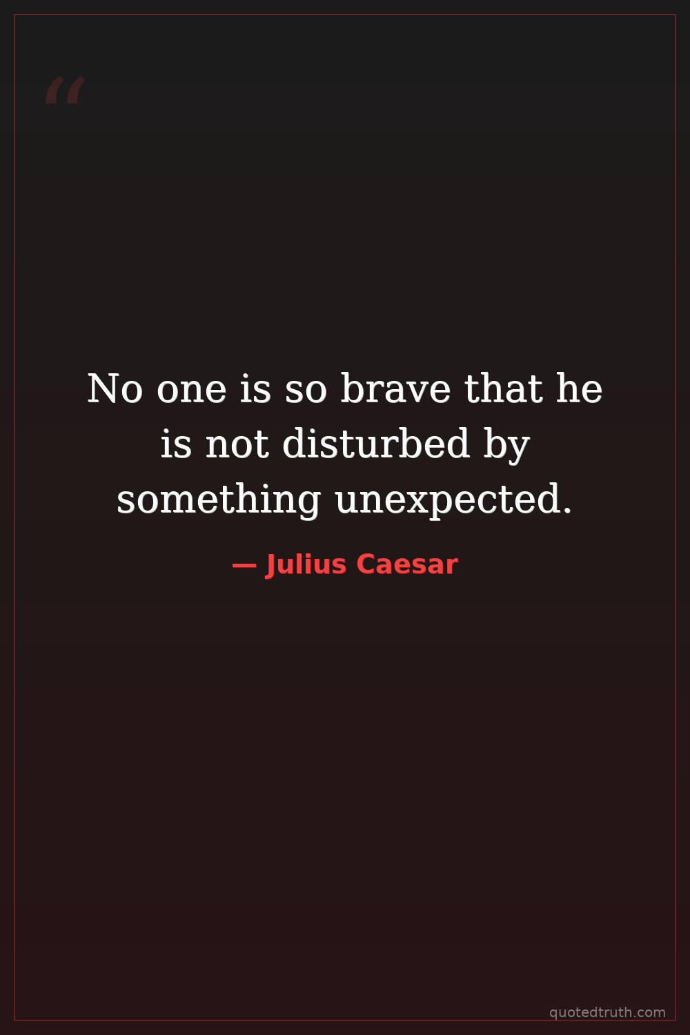 No one is so brave that he is not disturbed by something unexpected.