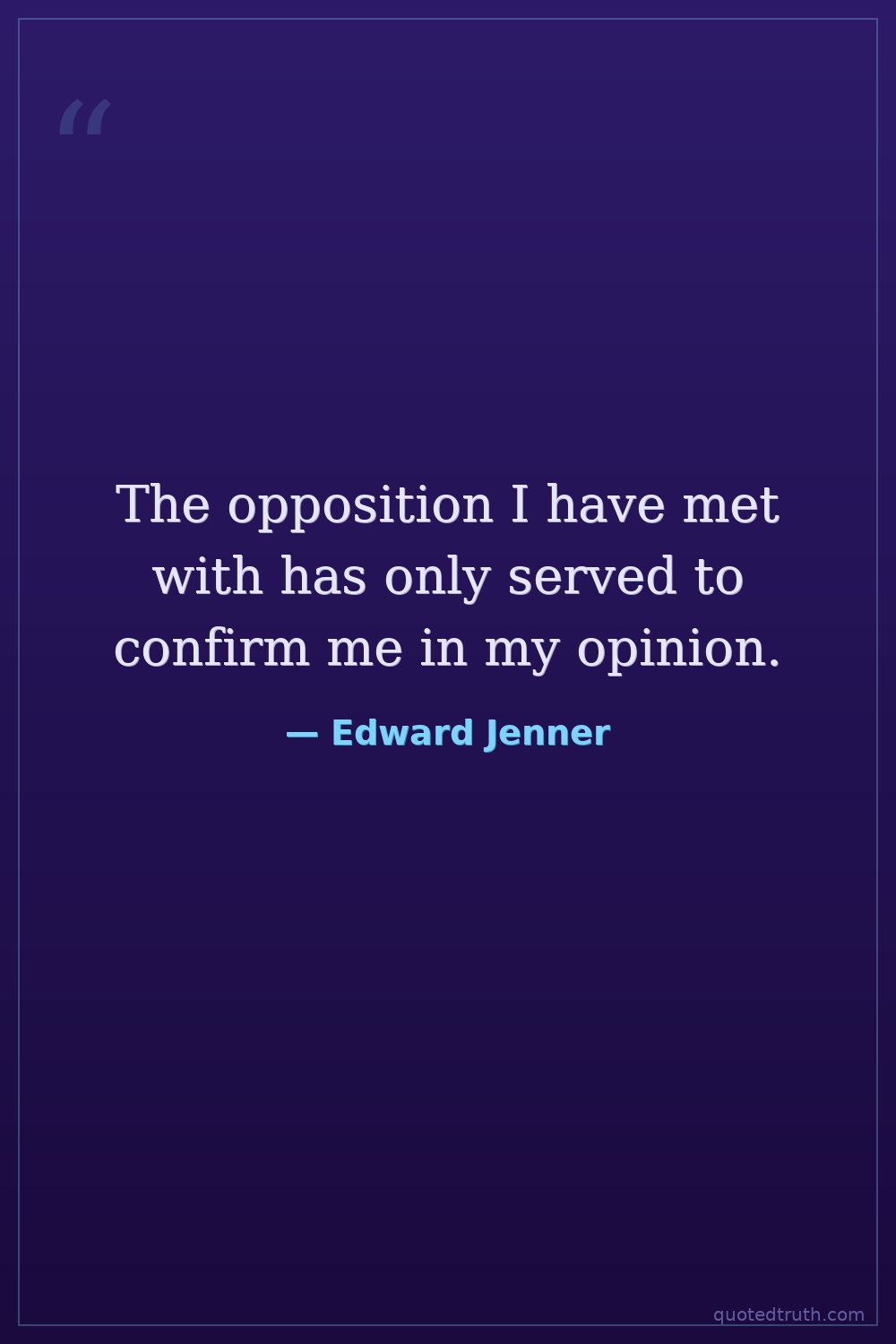The opposition I have met with has only served to confirm me in my opinion.