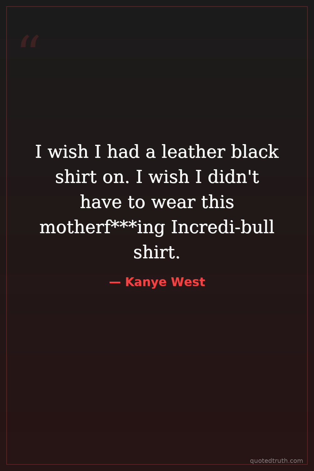 I wish I had a leather black shirt on. I wish I didn't have to wear this motherf***ing Incredi-bull shirt.