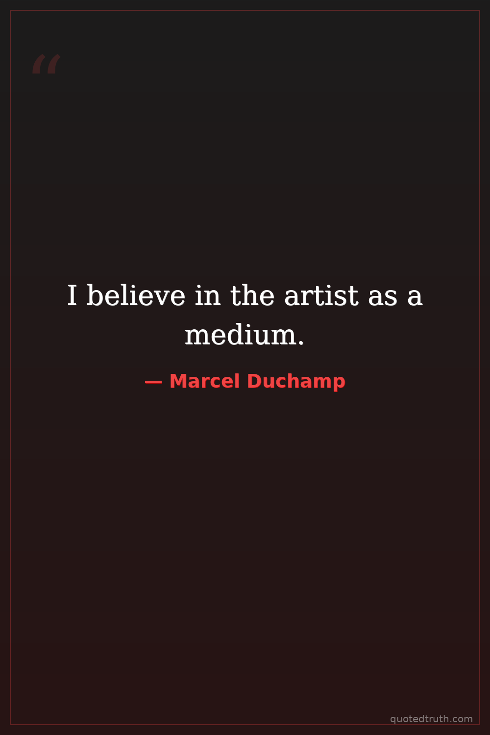 "The creative act is not performed by the artist alone; the spectator brings the work in contact with the external world by deciphering and interpreting its inner qualifications and thus adds his contr…"