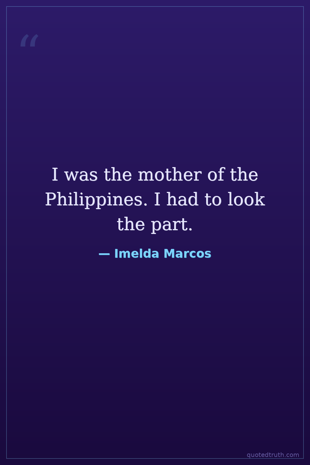 Controversial"The Filipinos want beauty. I have to look beautiful so that the poor Filipinos will have a star to look at from their slums."