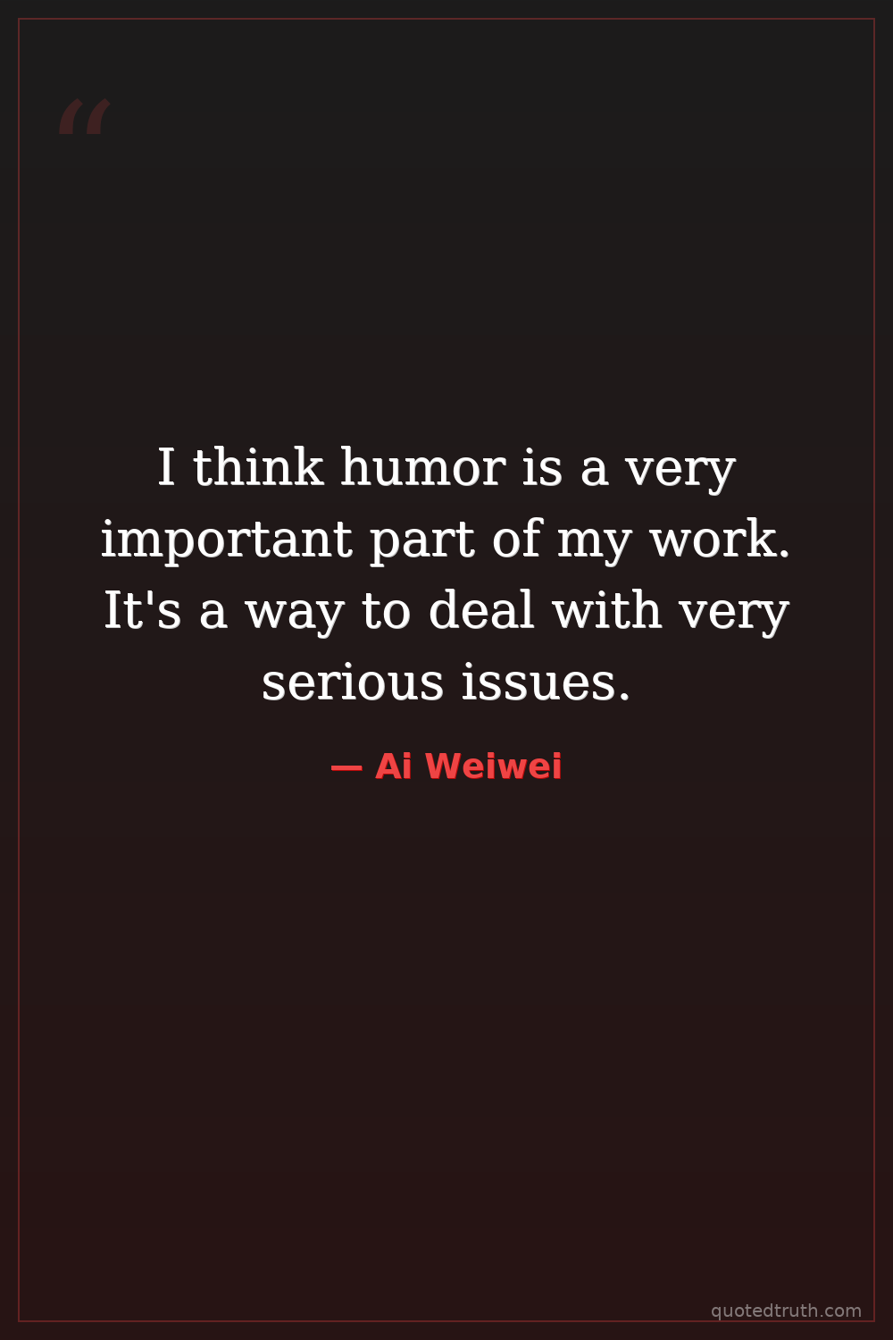 I think humor is a very important part of my work. It's a way to deal with very serious issues.