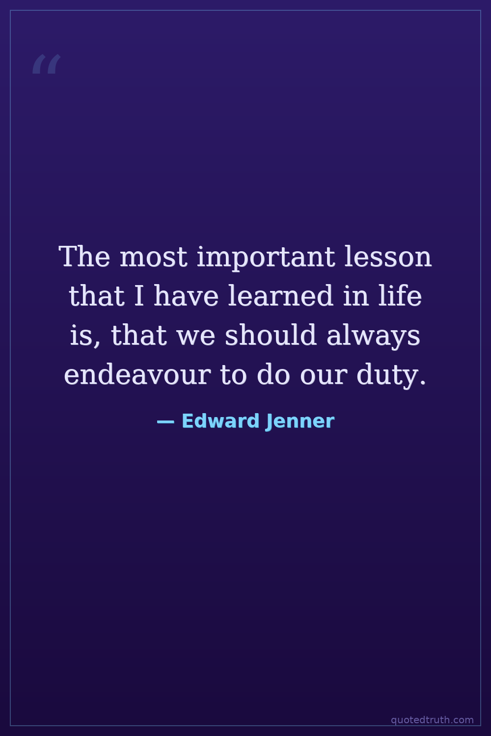 The most important lesson that I have learned in life is, that we should always endeavour to do our duty.