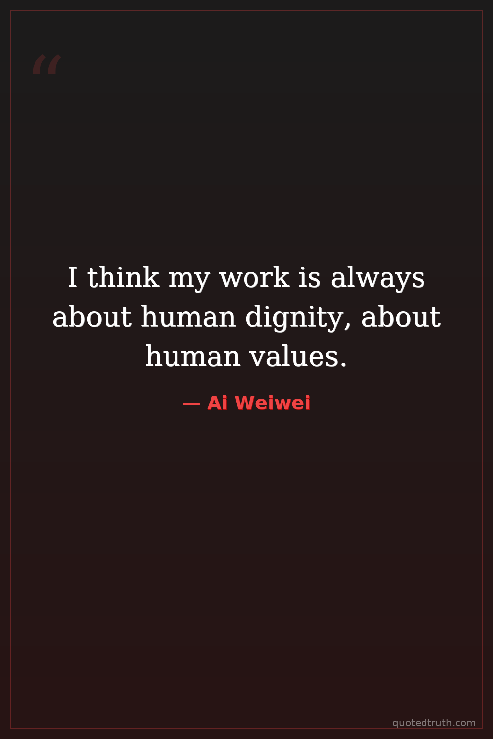 I think my work is always about human dignity, about human values.