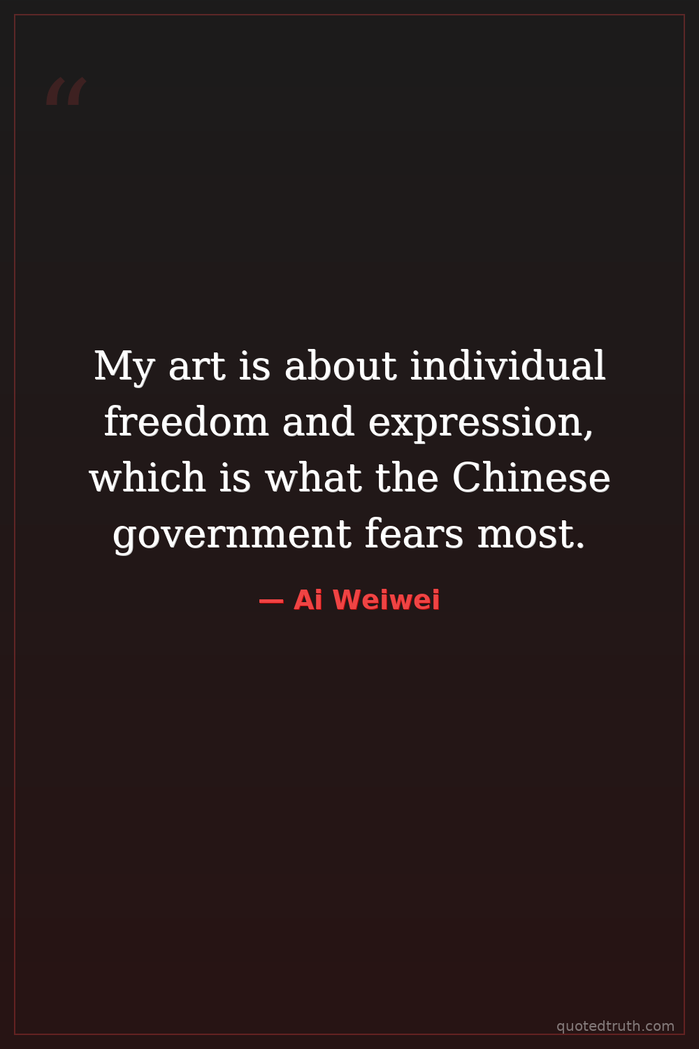 My art is about individual freedom and expression, which is what the Chinese government fears most.