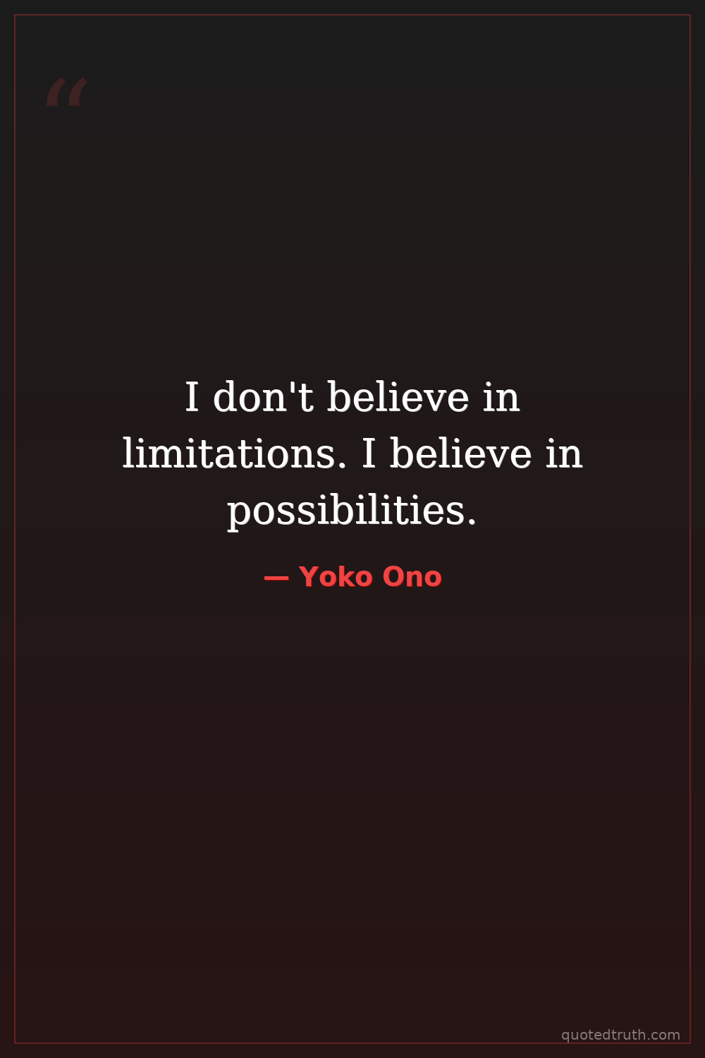 I don't believe in limitations. I believe in possibilities.