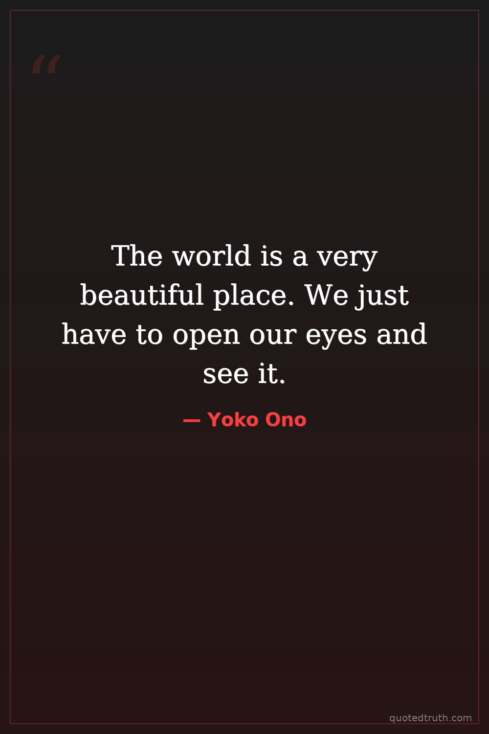 The world is a very beautiful place. We just have to open our eyes and see it.