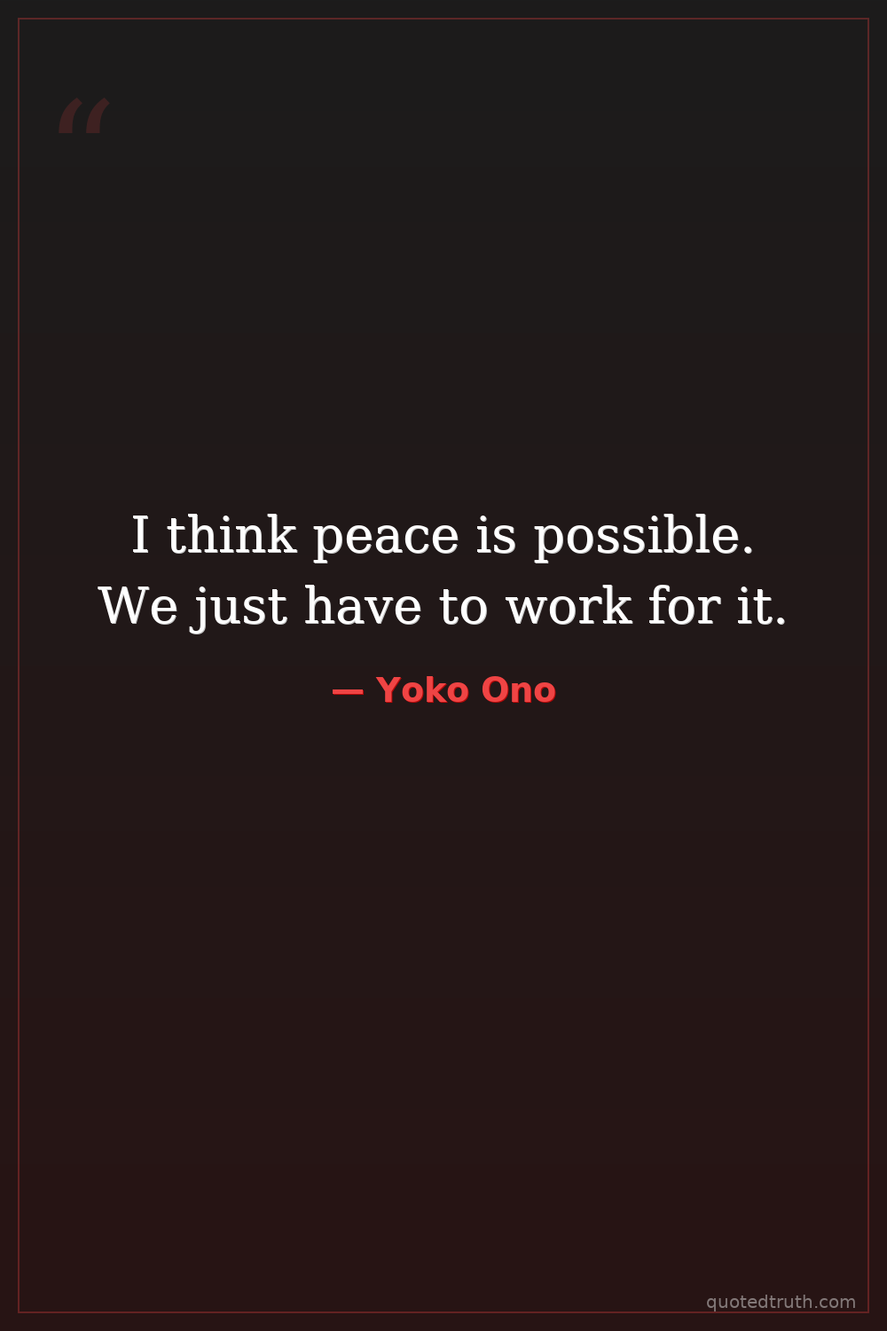 I think peace is possible. We just have to work for it.