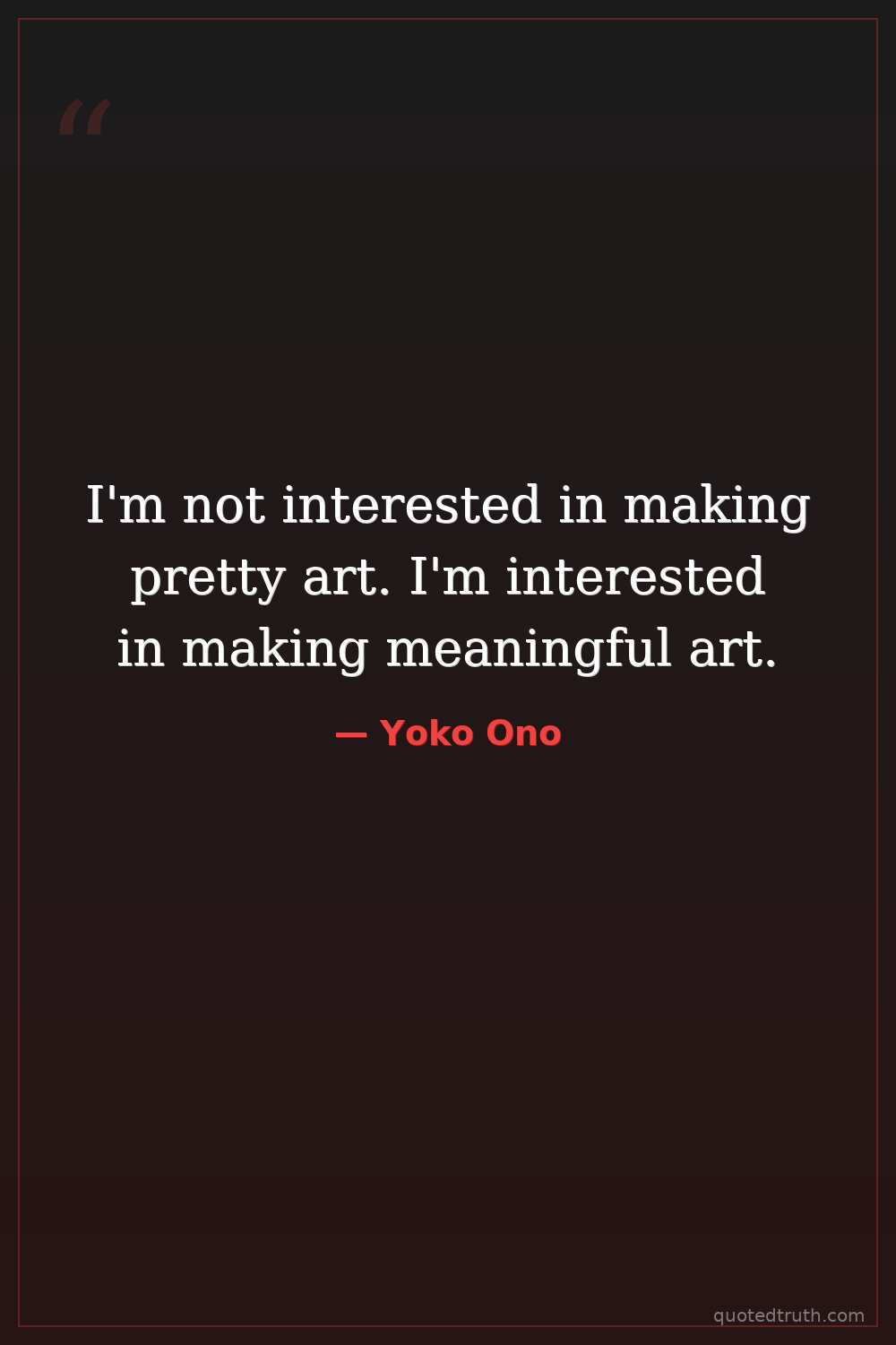 I'm not interested in making pretty art. I'm interested in making meaningful art.