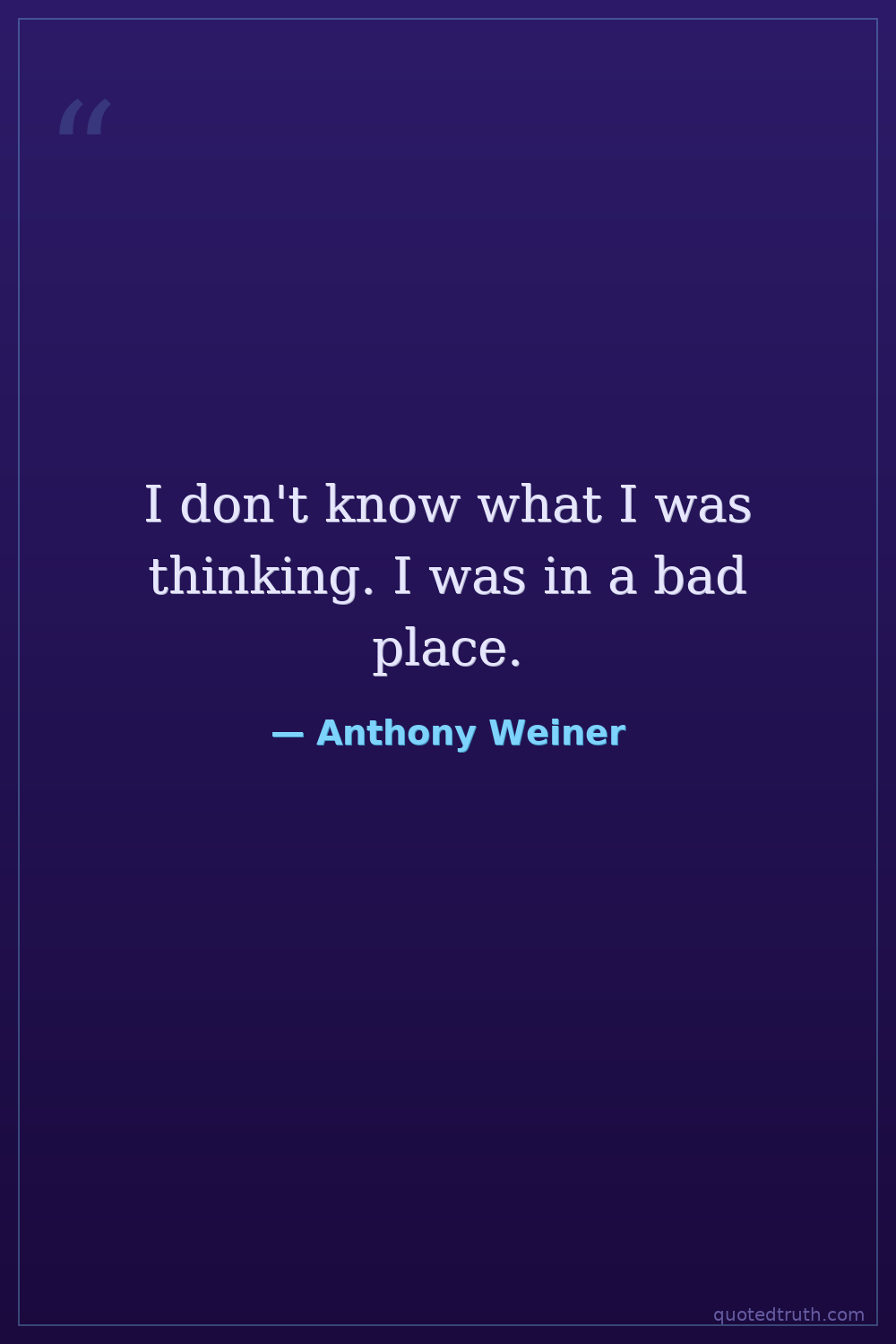 I don't know what I was thinking. I was in a bad place.