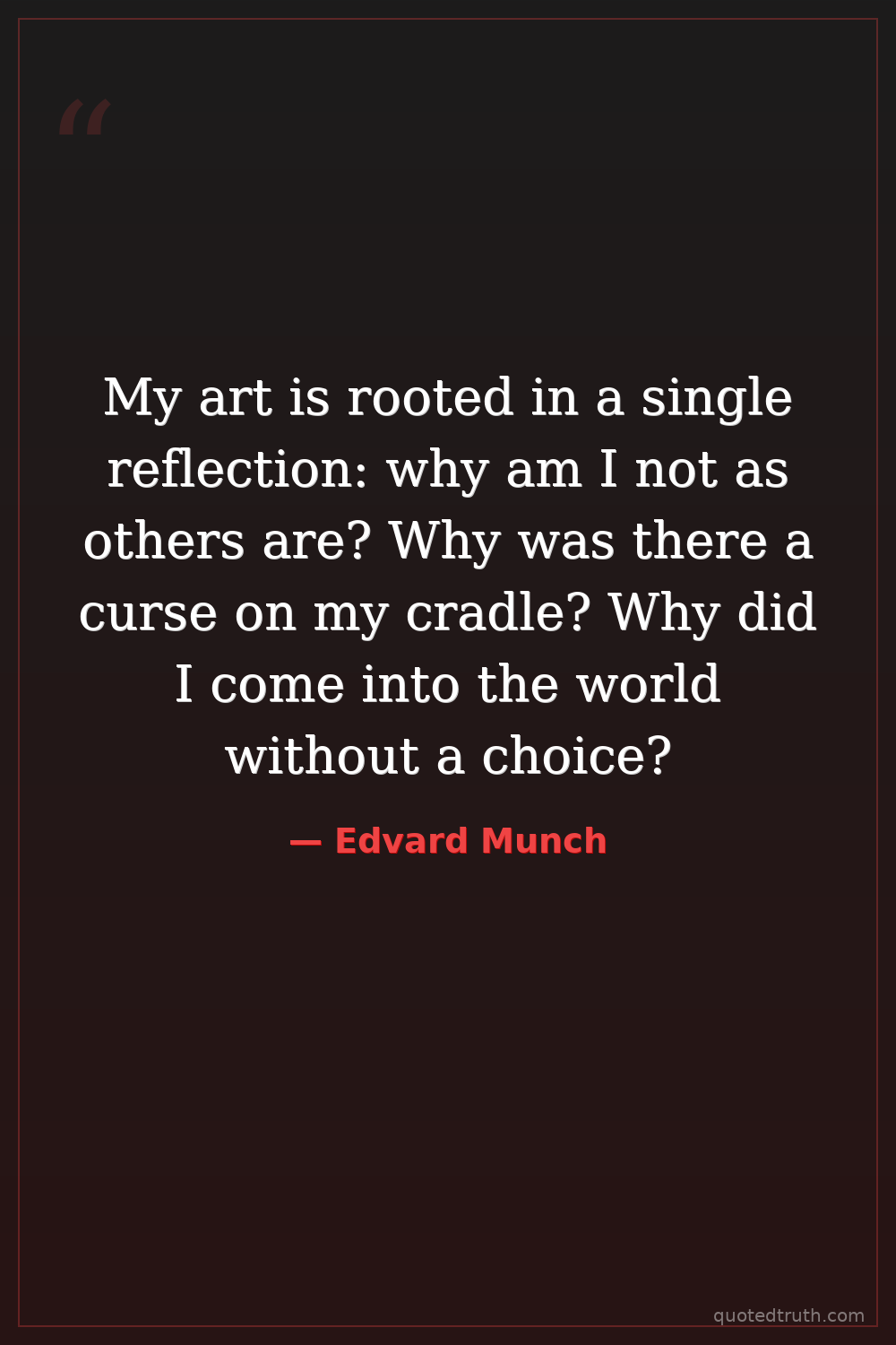 My art is rooted in a single reflection: why am I not as others are? Why was there a curse on my cradle? Why did I come into the world without a choice?