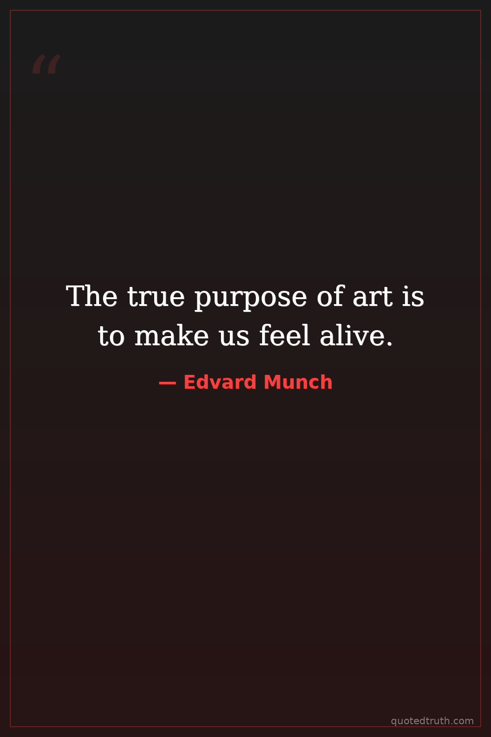The true purpose of art is to make us feel alive.