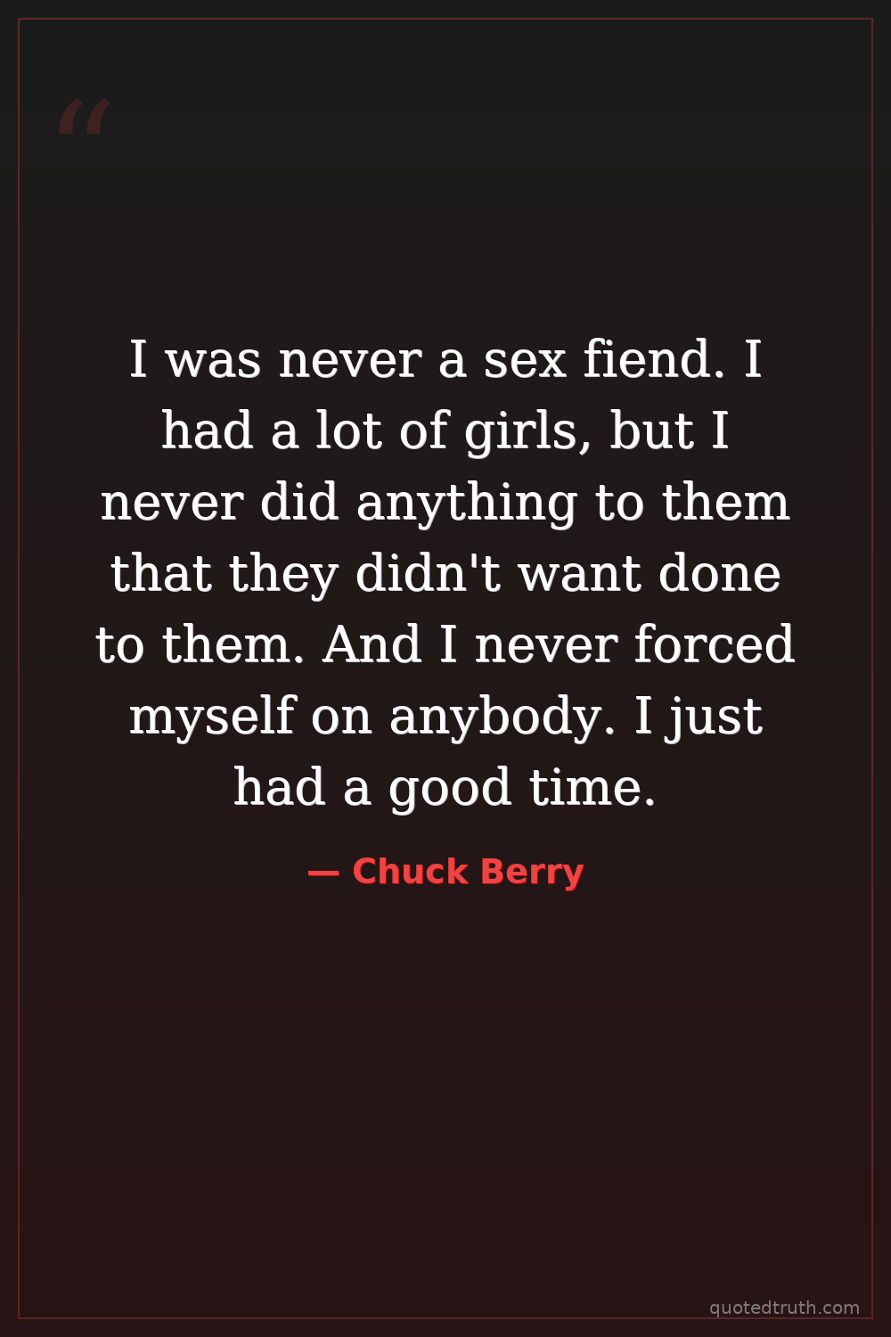 I was never a sex fiend. I had a lot of girls, but I never did anything to them that they didn't want done to them. And I never forced myself on anybody. I just had a good time.