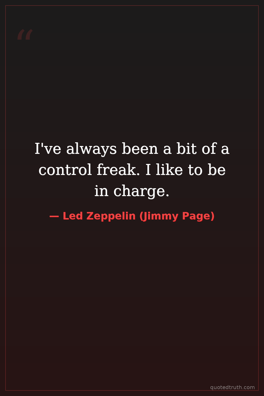 I've always been a bit of a control freak. I like to be in charge.