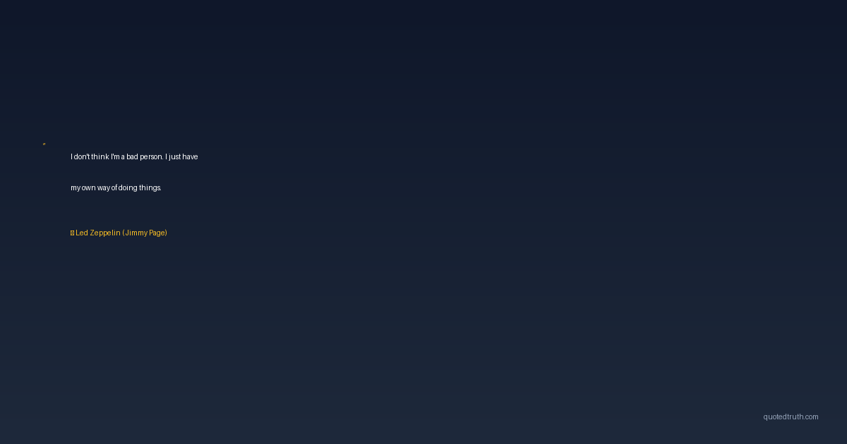 I don't think I'm a bad person. I just have my own way of doing things.