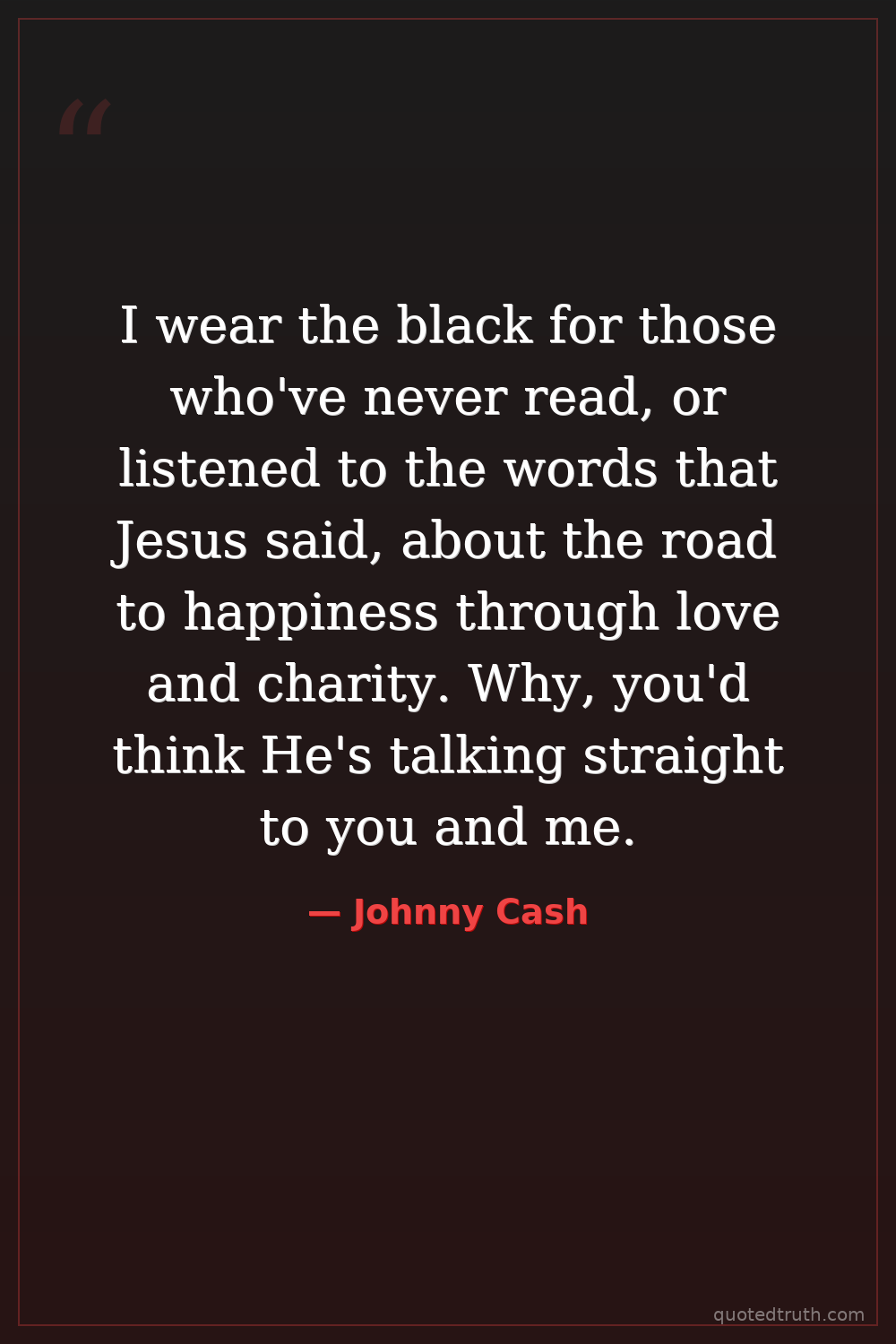 I wear the black for those who've never read, or listened to the words that Jesus said, about the road to happiness through love and charity. Why, you'd think He's talking straight to you and me.
