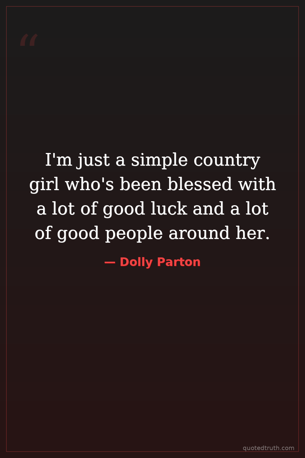 I'm just a simple country girl who's been blessed with a lot of good luck and a lot of good people around her.
