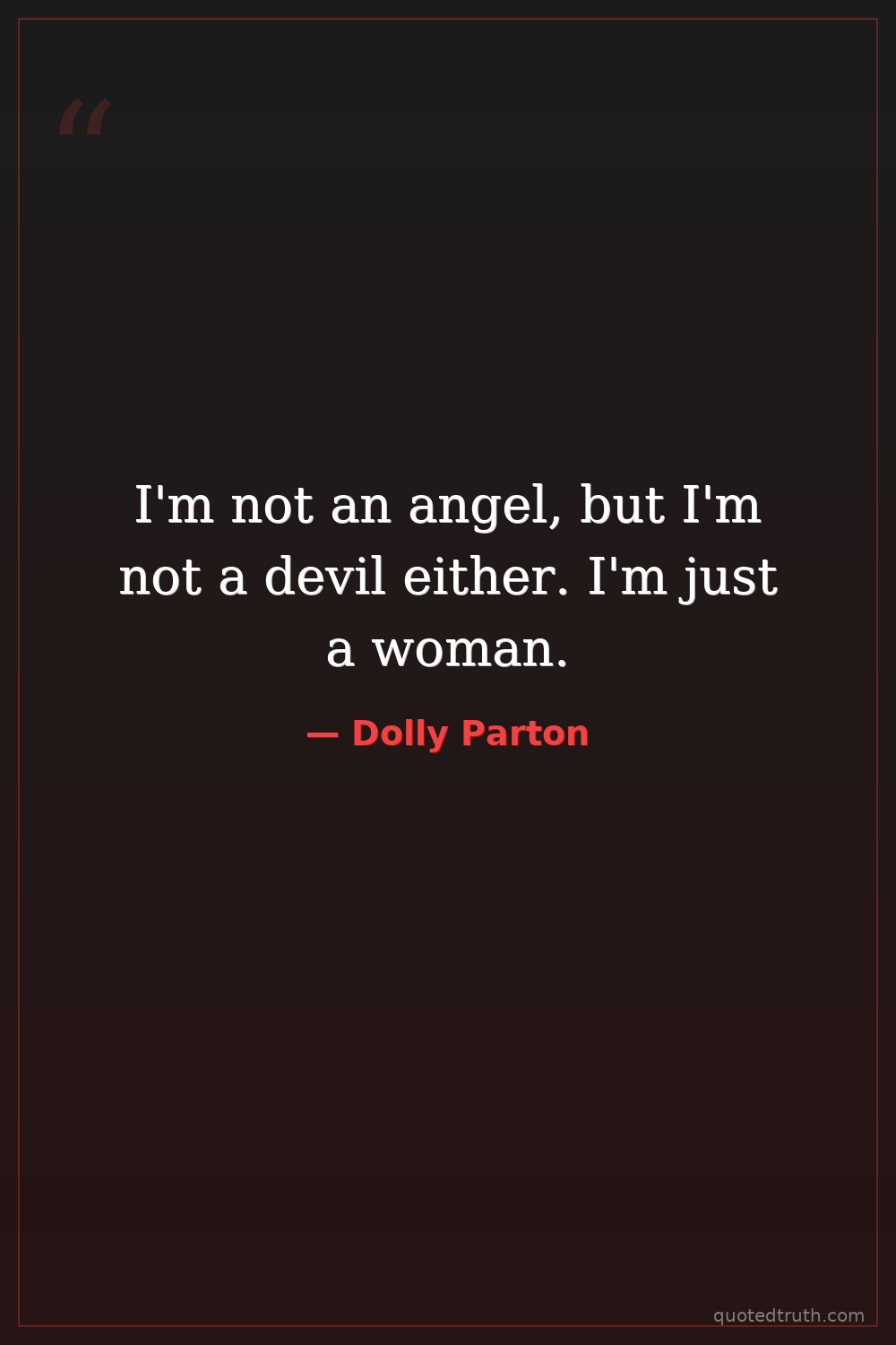 I'm not an angel, but I'm not a devil either. I'm just a woman.