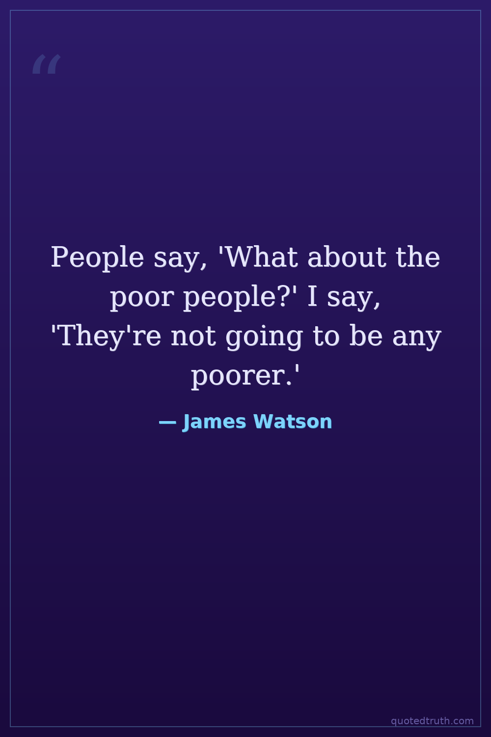 People say, 'What about the poor people?' I say, 'They're not going to be any poorer.'