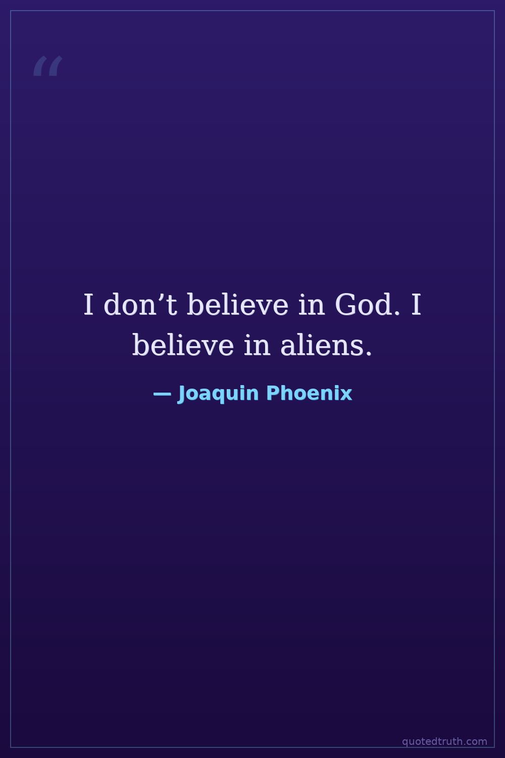I don’t believe in God. I believe in aliens.