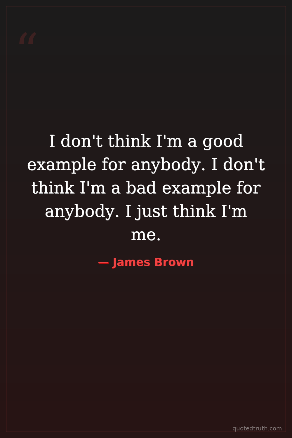 I don't think I'm a good example for anybody. I don't think I'm a bad example for anybody. I just think I'm me.