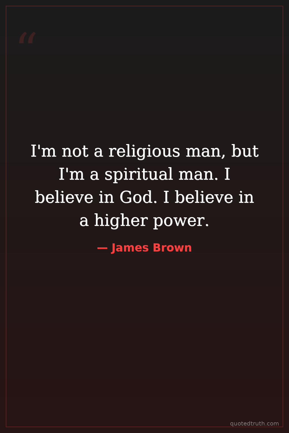I'm not a religious man, but I'm a spiritual man. I believe in God. I believe in a higher power.