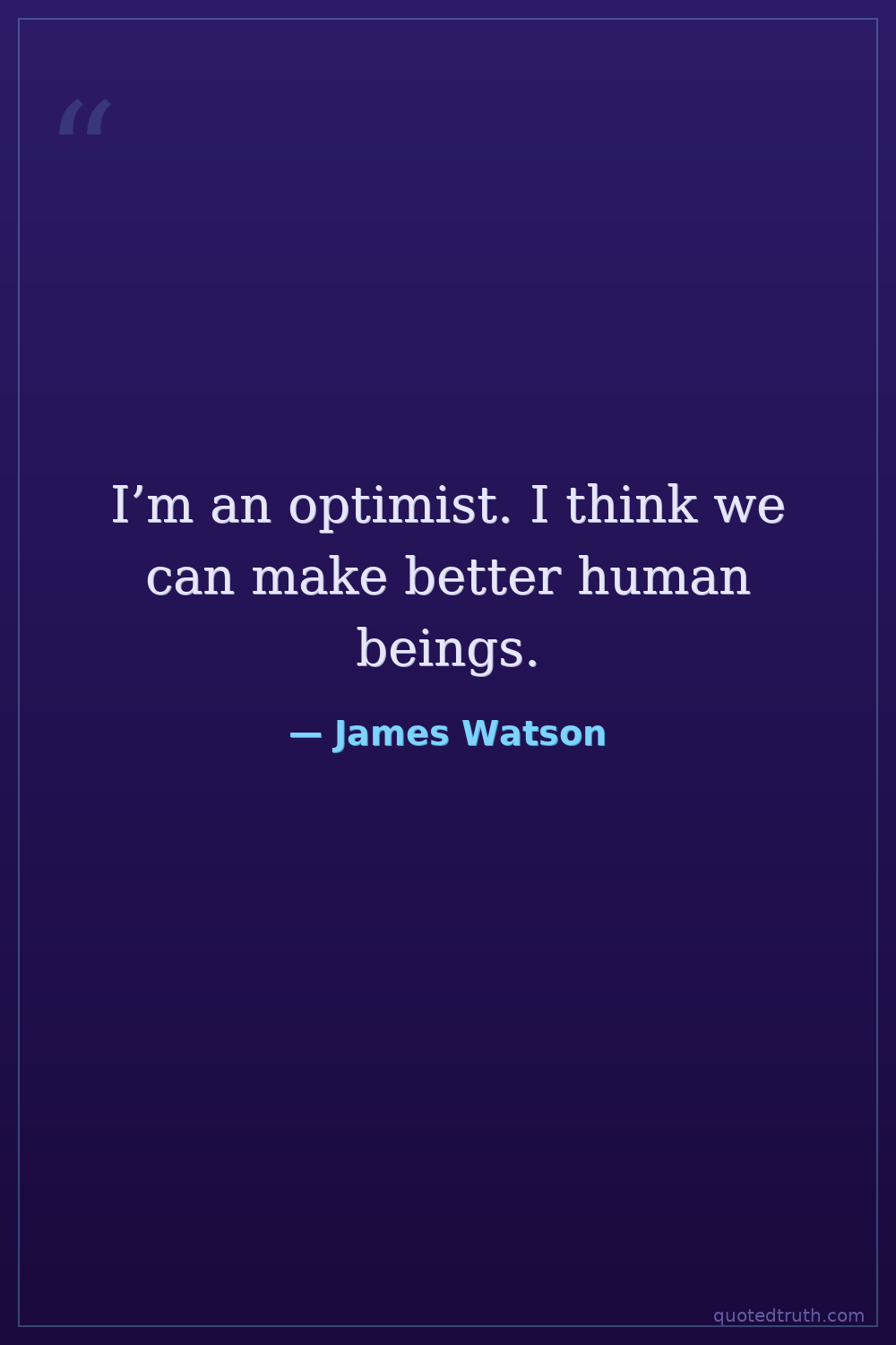 I’m an optimist. I think we can make better human beings.