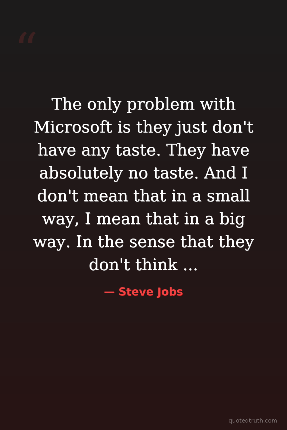The only problem with Microsoft is they just don't have any taste. They have absolutely no taste. And I don't mean that in a small way, I mean that in a big way. In the sense that they don't think of original ideas, and they don't bring much culture into their products.