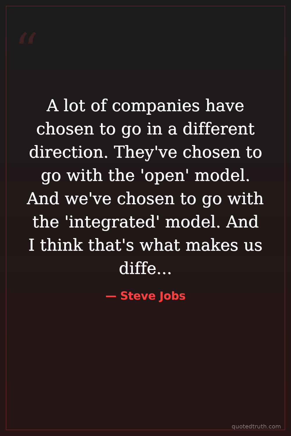 A lot of companies have chosen to go in a different direction. They've chosen to go with the 'open' model. And we've chosen to go with the 'integrated' model. And I think that's what makes us different.