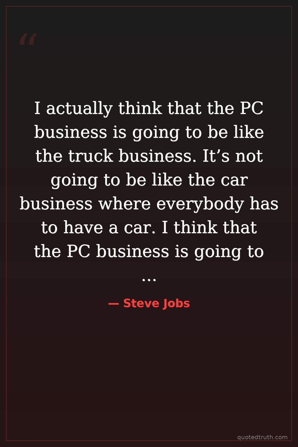 I actually think that the PC business is going to be like the truck business. It’s not going to be like the car business where everybody has to have a car. I think that the PC business is going to be more like the truck business where people will have PCs, but they’re not going to be used by everyone.