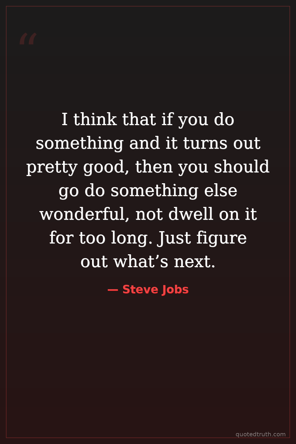 I think that if you do something and it turns out pretty good, then you should go do something else wonderful, not dwell on it for too long. Just figure out what’s next.