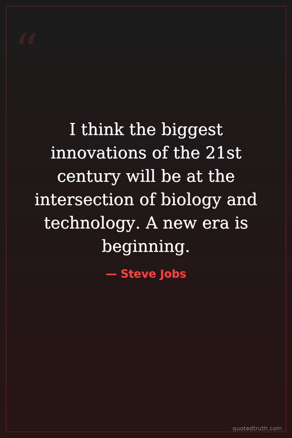 I think the biggest innovations of the 21st century will be at the intersection of biology and technology. A new era is beginning.