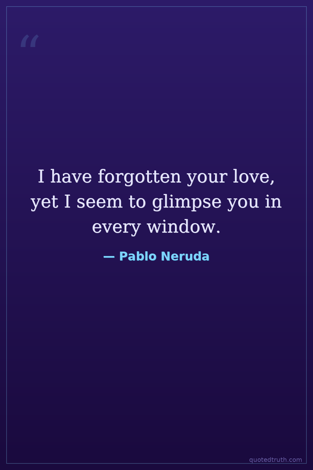 I have forgotten your love, yet I seem to glimpse you in every window.