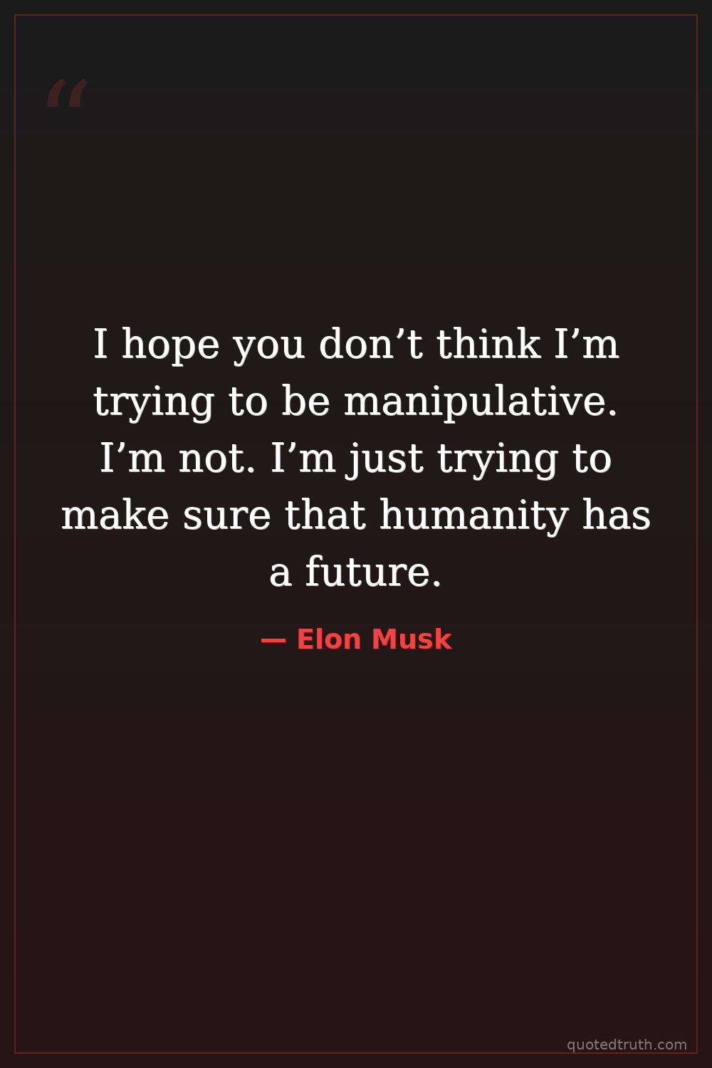 I hope you don’t think I’m trying to be manipulative. I’m not. I’m just trying to make sure that humanity has a future.