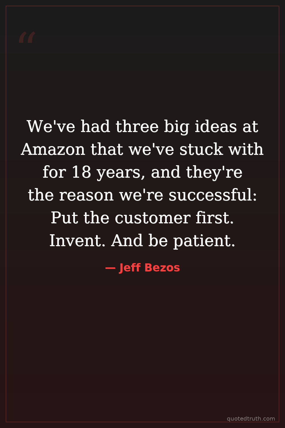 We've had three big ideas at Amazon that we've stuck with for 18 years, and they're the reason we're successful: Put the customer first. Invent. And be patient.