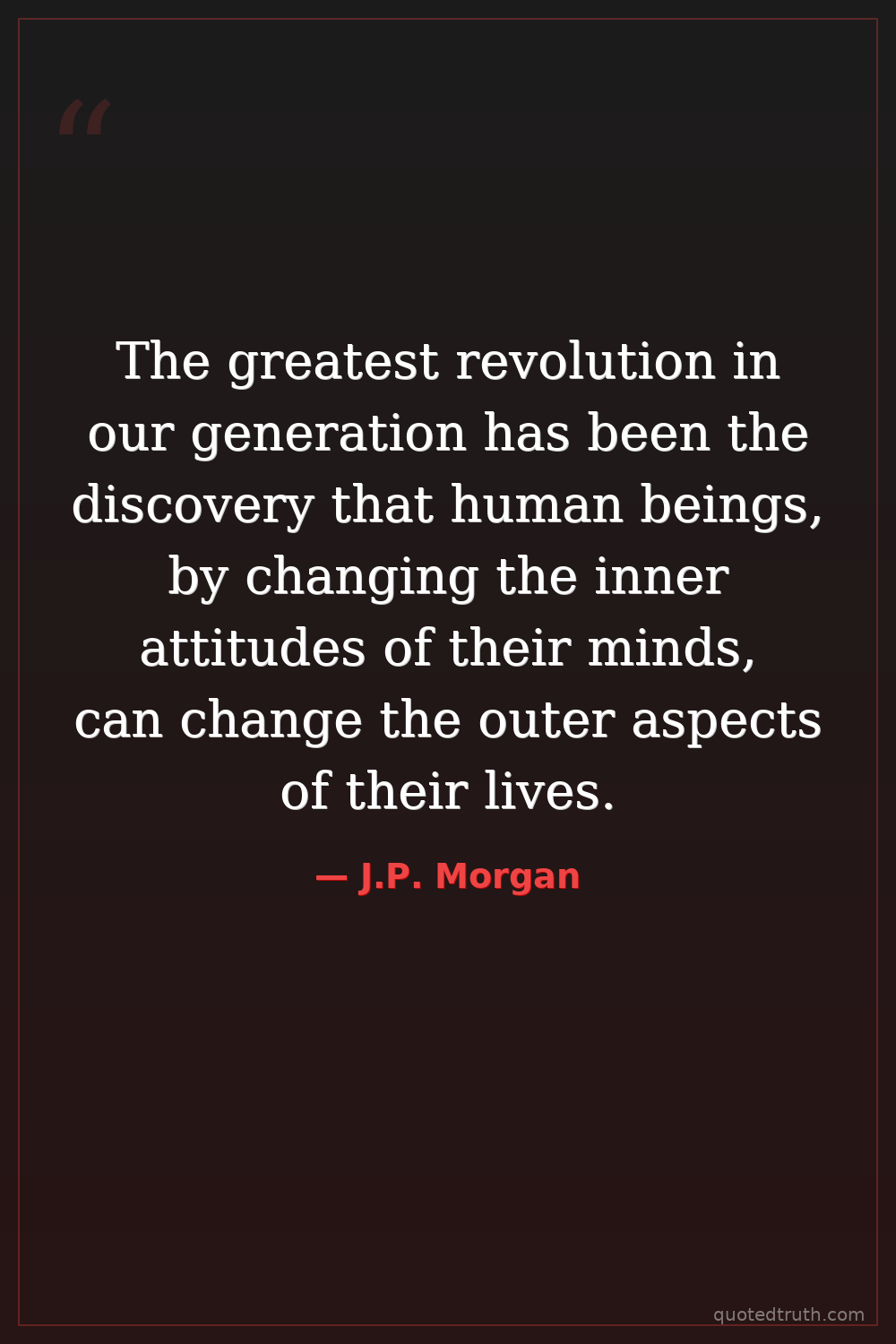 The greatest revolution in our generation has been the discovery that human beings, by changing the inner attitudes of their minds, can change the outer aspects of their lives.